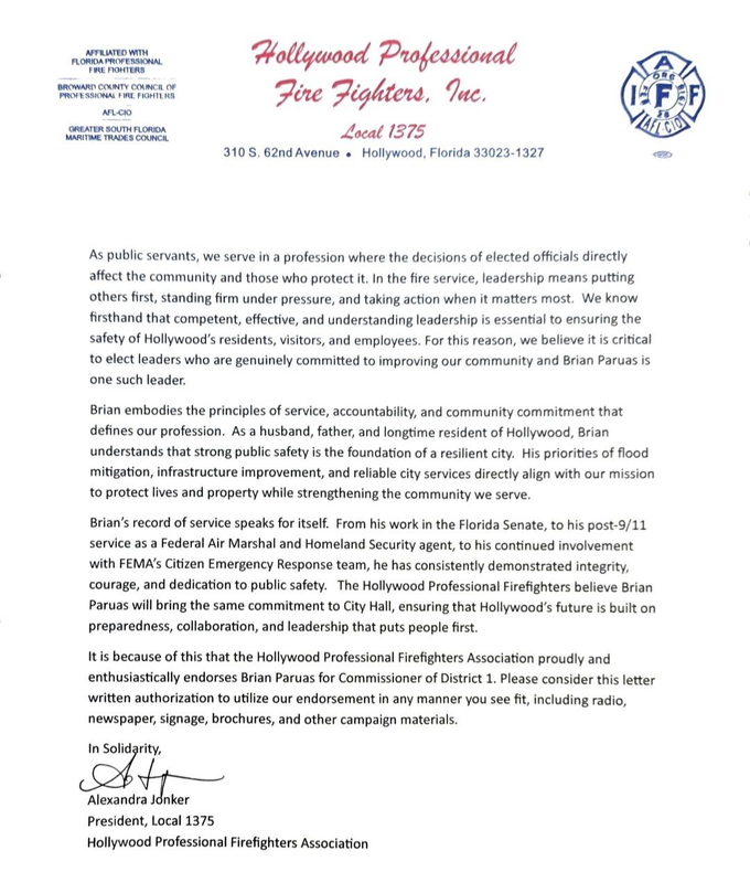 When you elect Brian Parúas as your City Commissioner for District 1, you’re choosing someone who sees every issue through the lens of a father, a neighbor, and a committed community member. Hollywood deserves leadership that reflects its values and champions its future. Brian Parúas is ready to be that leader.